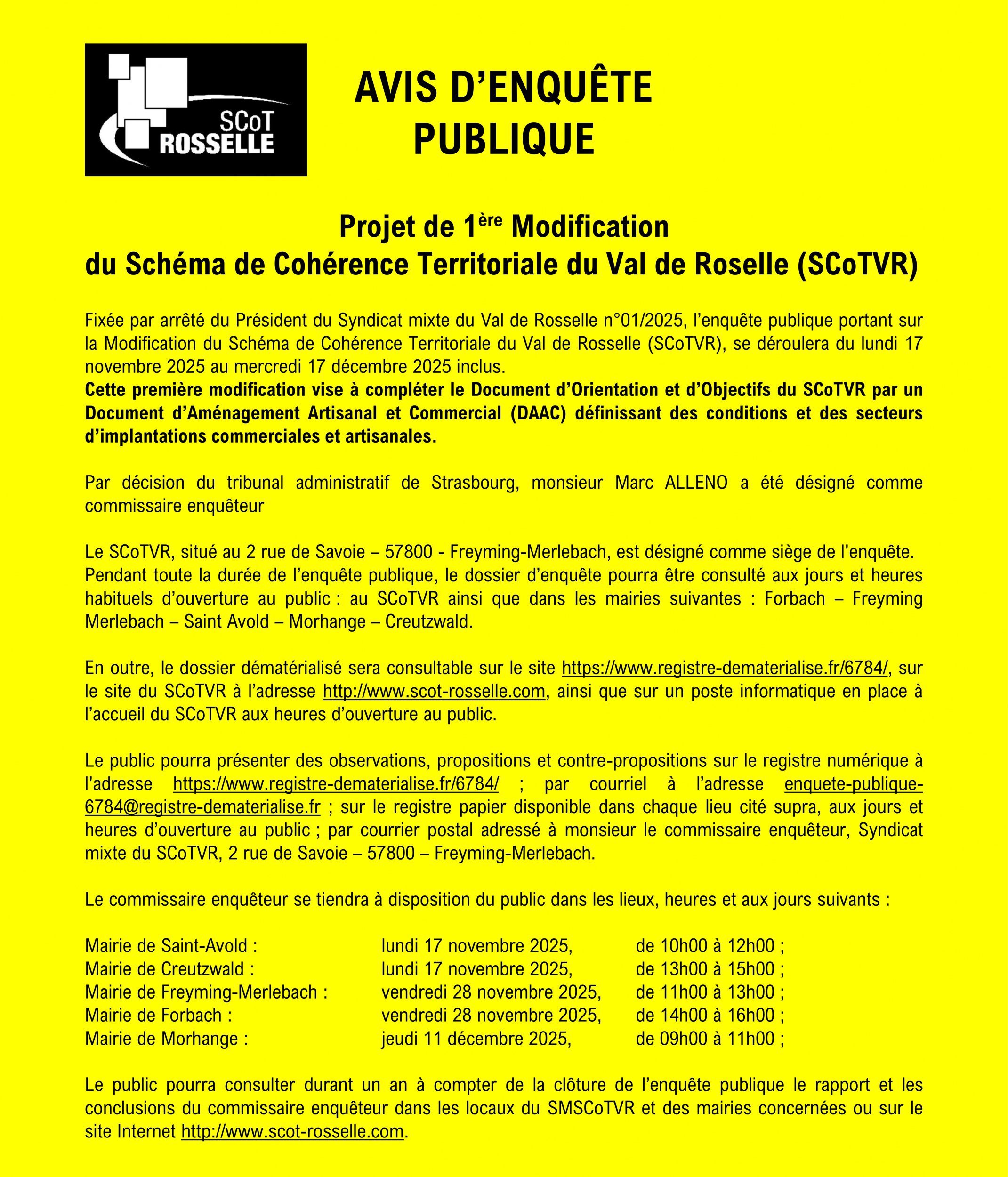 Modification du SCoT du Val de Rosselle pour intégration d'un Document d'Aménagement Artisanal et Commercial - DAAC